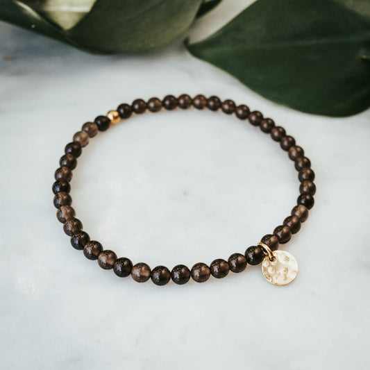 Pulsera de piedras preciosas con abalorios apilables | Cuarzo ahumado
