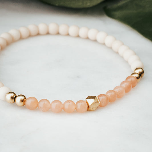 Pulsera de piedras preciosas apilables geodésicas | Piedra solar y fósil