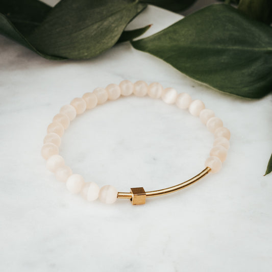 Pulsera de piedras preciosas Orbit | Ojo de gato rosa y latón