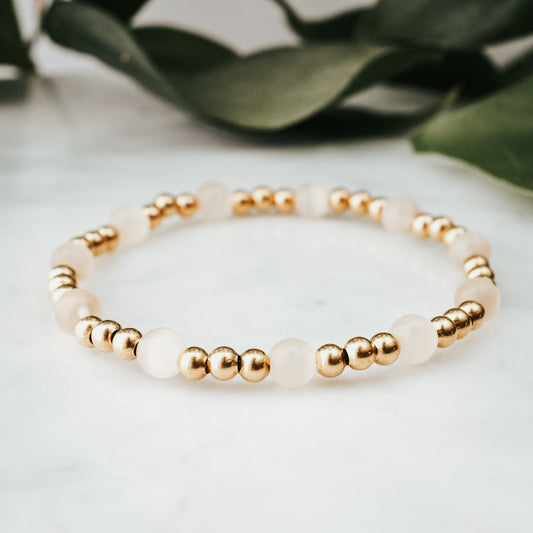Pulsera apilable de piedras preciosas de ojo de gato rosa
