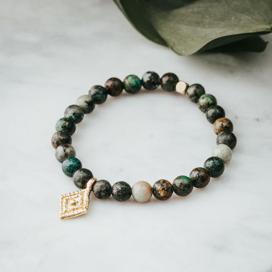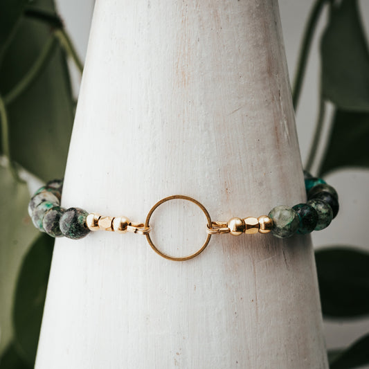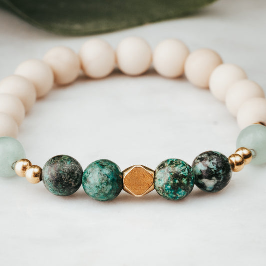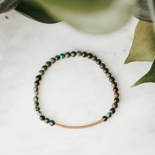 Pulsera de piedras preciosas gruesas | Turquesa africana y jade verde