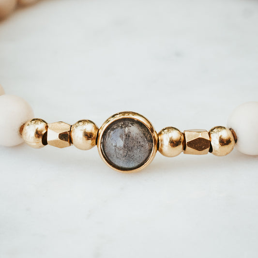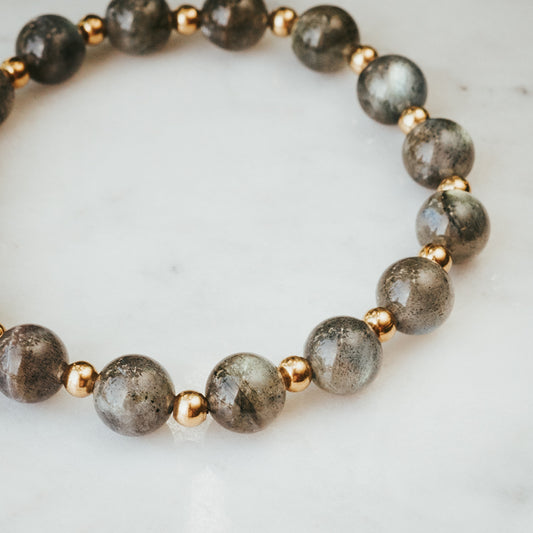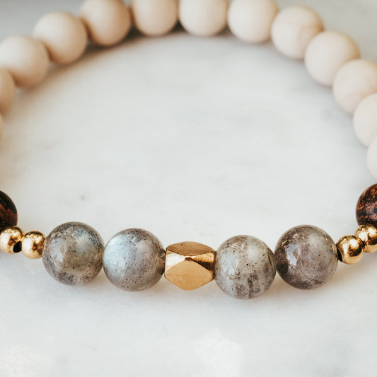 Pulsera con piedras preciosas decorativas | Pulsera de labradorita, sándalo y fósil