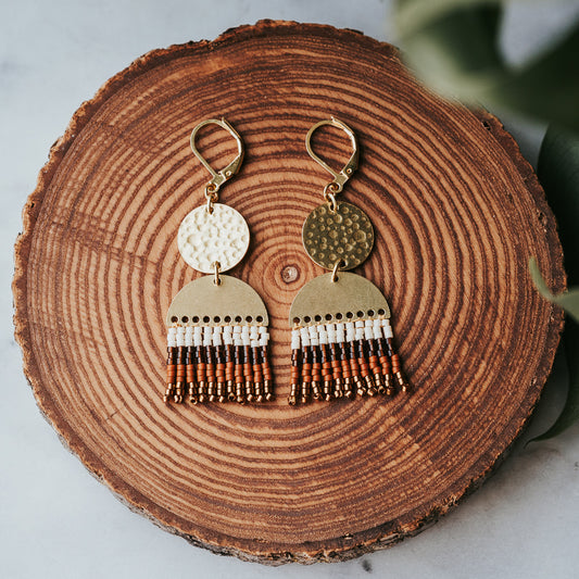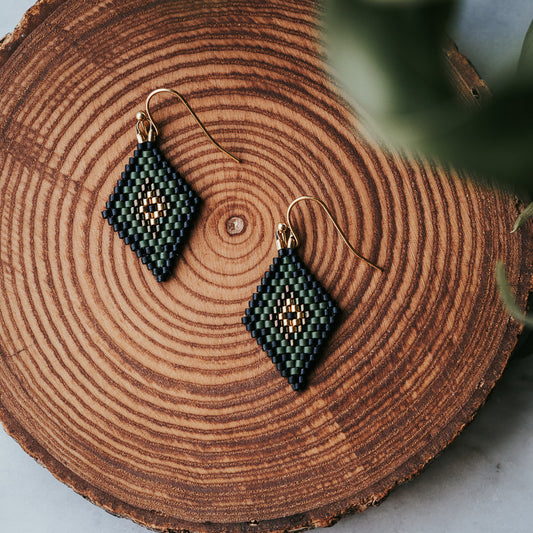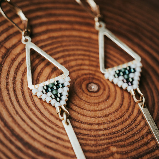 Pendientes de flecos con cuentas de rombos vintage bailando