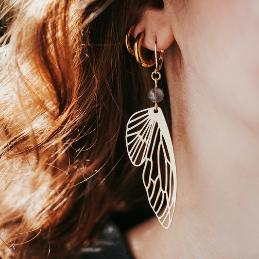 Aleteo Dorado | Pendientes Mariposa de Labradorita