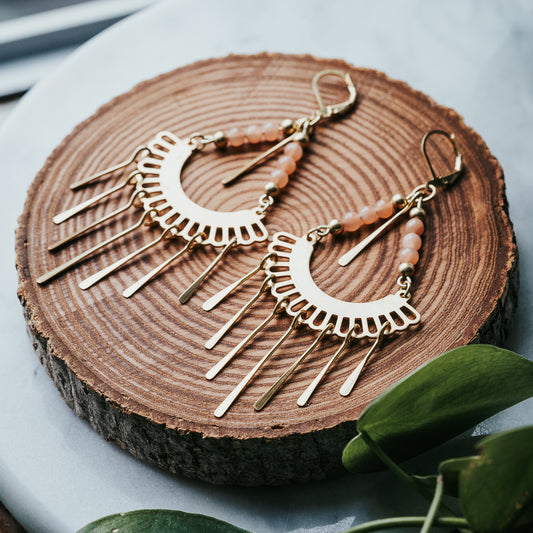 • Pendientes de flecos con gemas hippies | Piedra solar