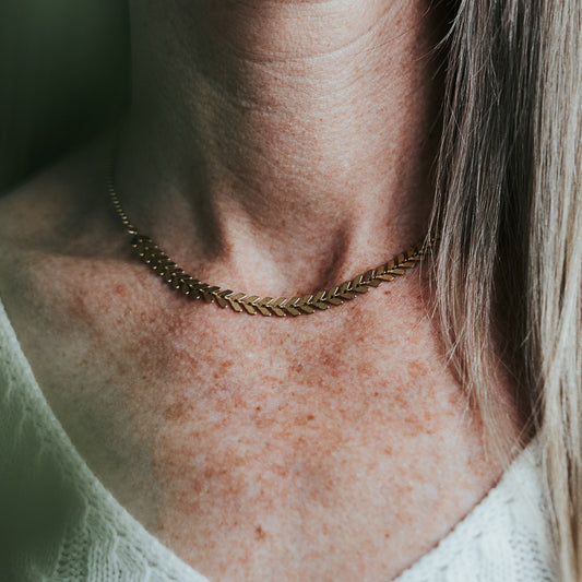 Collar bohemio de latón y piedra preciosa de ojo de tigre