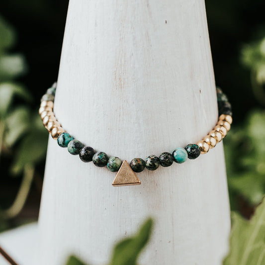 Pulsera de turquesa africana, lava y piedras preciosas fósiles