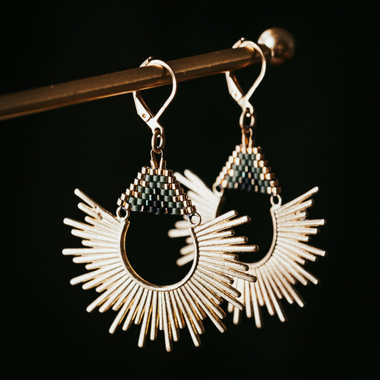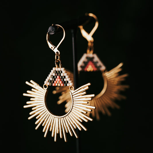 Pendientes bohemios de latón con flecos y cuentas de arcoíris