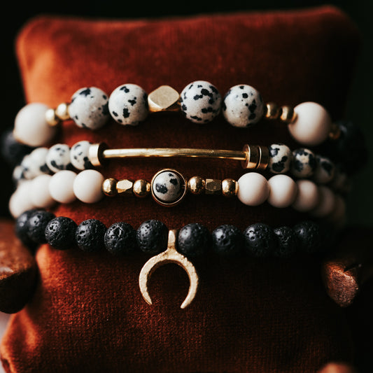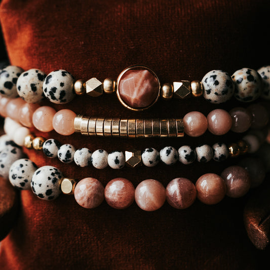 Pulsera apilable de piedras preciosas dálmatas y piedras solares
