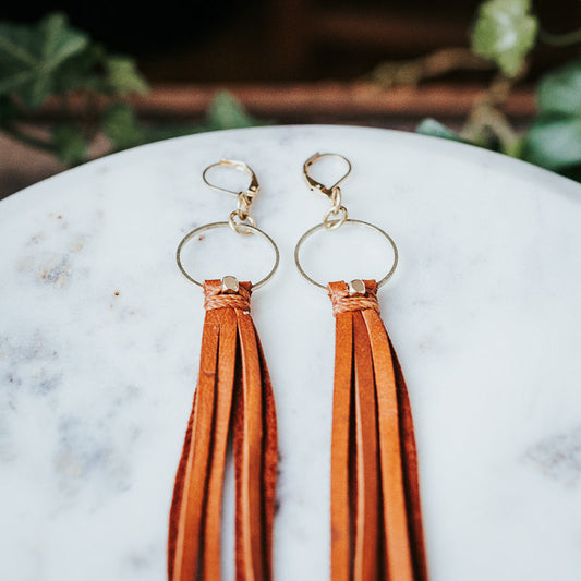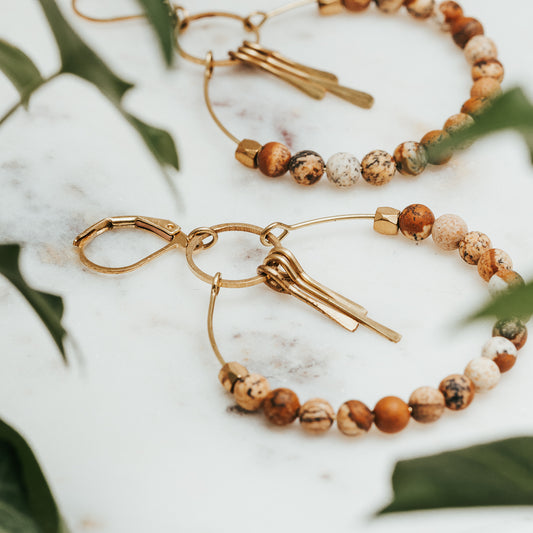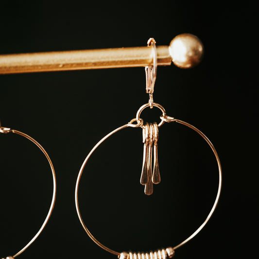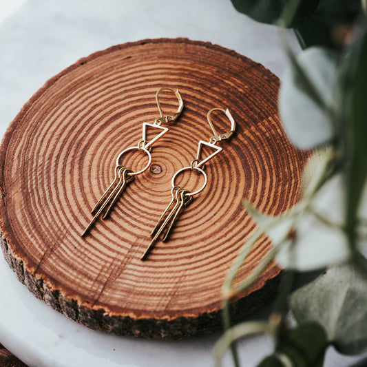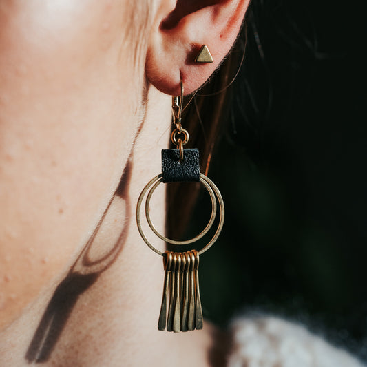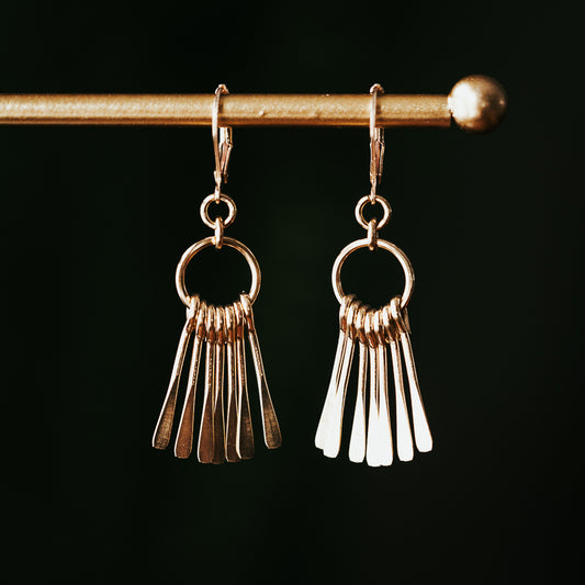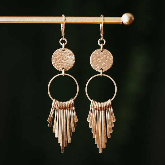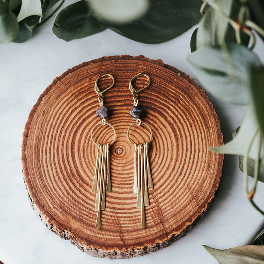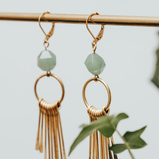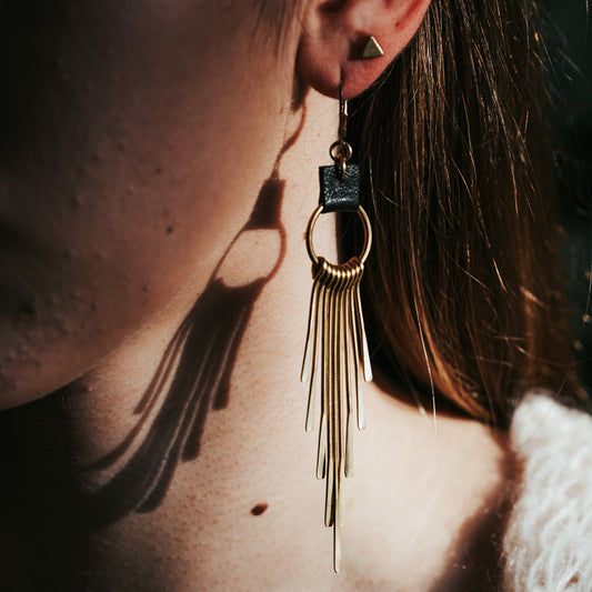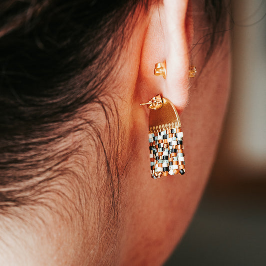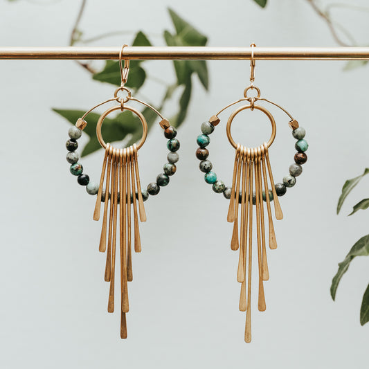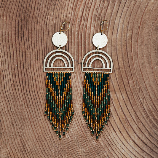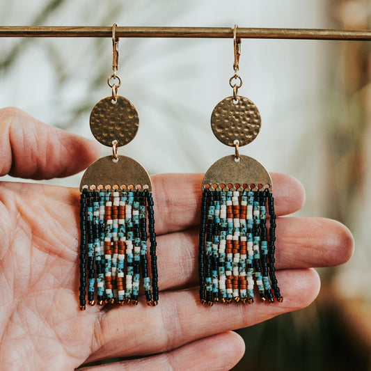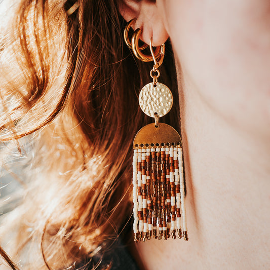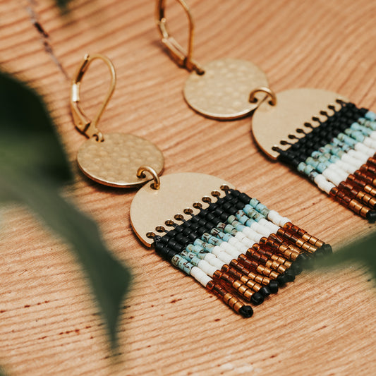 Pendientes bohemios de latón con flecos y cuentas de arcoíris