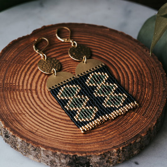 Pendientes de flecos con cuentas de rombos vintage bailando