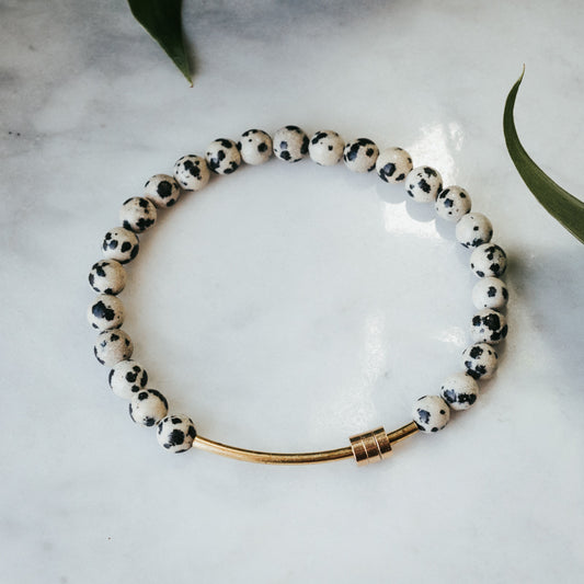 Pulsera apilable de piedras preciosas de jaspe dálmata