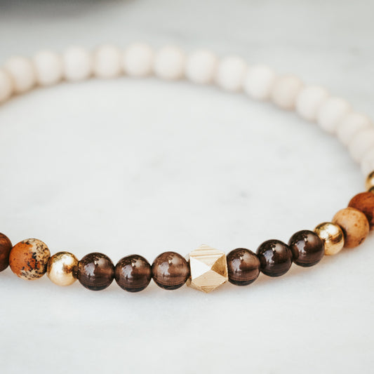 Pulsera con piedras preciosas decorativas | Pulsera de labradorita, sándalo y fósil