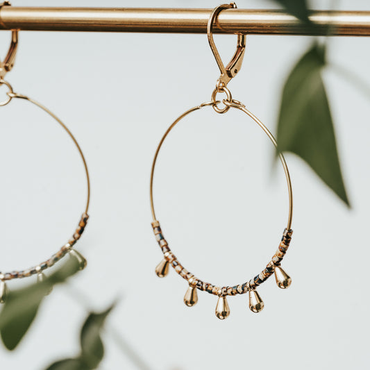 Pendientes de aro con cuentas de semillas en forma de lágrima
