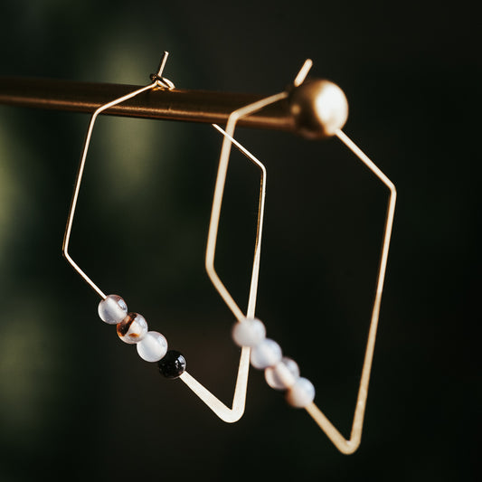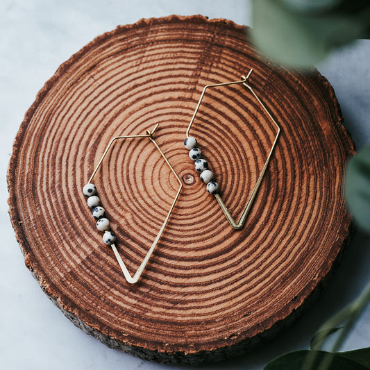 Aros de rombo | Pendientes minimalistas de jaspe dálmata