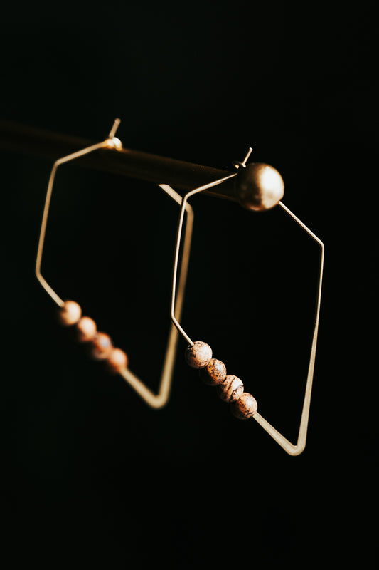 Aros de rombo | Pendientes minimalistas de jaspe con imagen