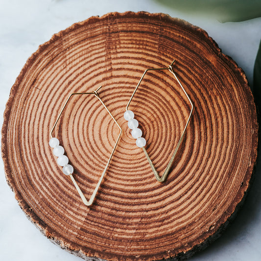 Aros de rombo | Pendientes minimalistas de jade blanco