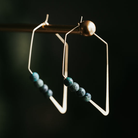Aros de rombo | Pendientes minimalistas de jaspe turquesa africano